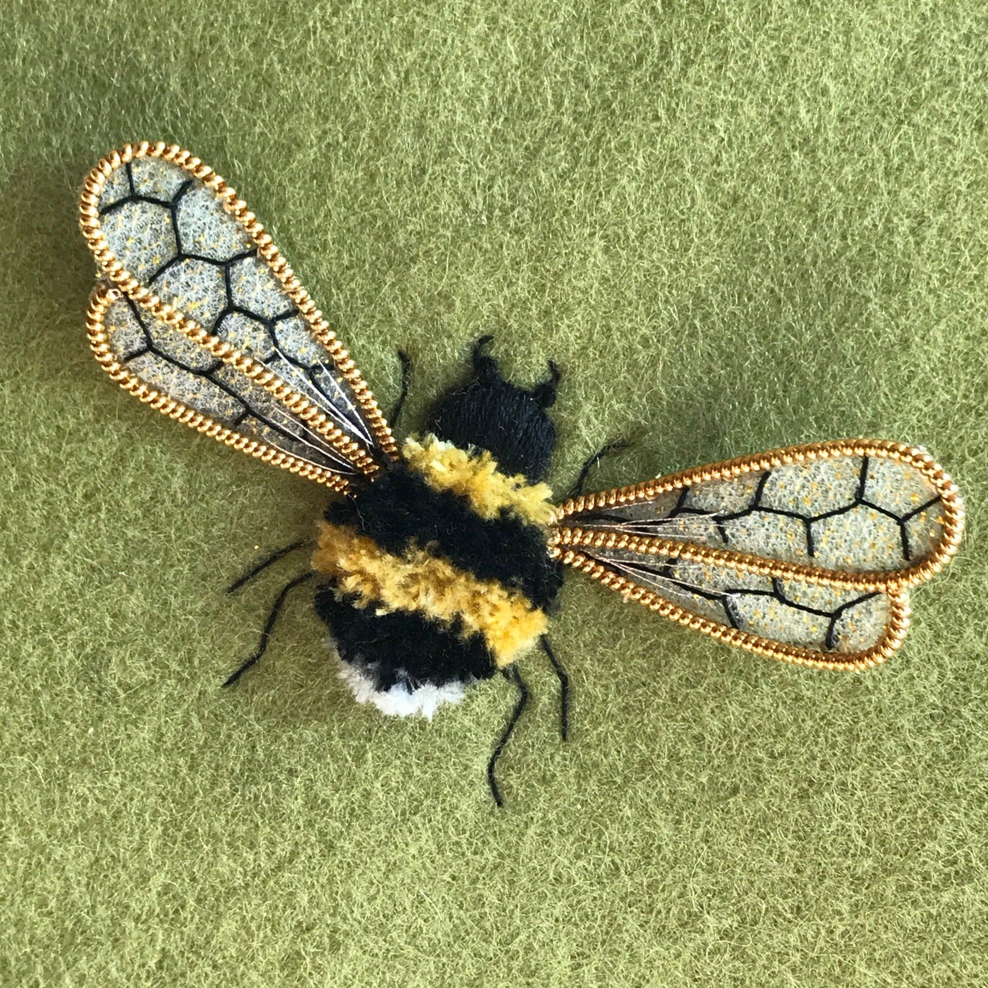 Using a stiletto make a hole in the centre of the flower and insert the stamens.Turn the piece over and secure the memory wire to the back of the piece using an overcast stitch with dressmaking cotton. Cut off the excess wire.