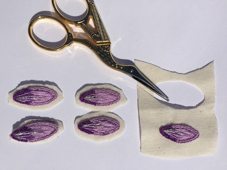 Carefully cut out the embroidered petals. Leave about 2/3mm of fabric around the edge.