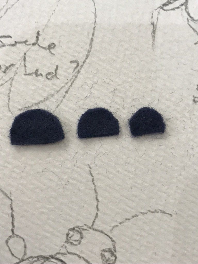 Now create the padding for head with three layers of felt. Cut three semi circles as shown.