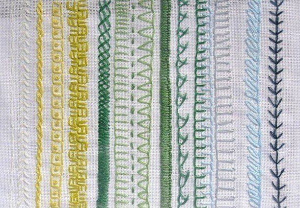 This is a horizontal and vertical framework of stitching. Its worked here straight onto a linen twill but as you become more experienced you can work it over embroidery stitches such as satin and long and short.
