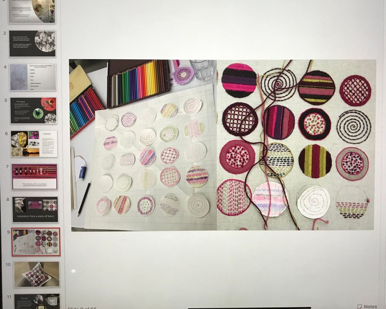 I include samples and stories from my Royal School of Needlework days, my art college days and the influences that the V&A has had on my textile journey.