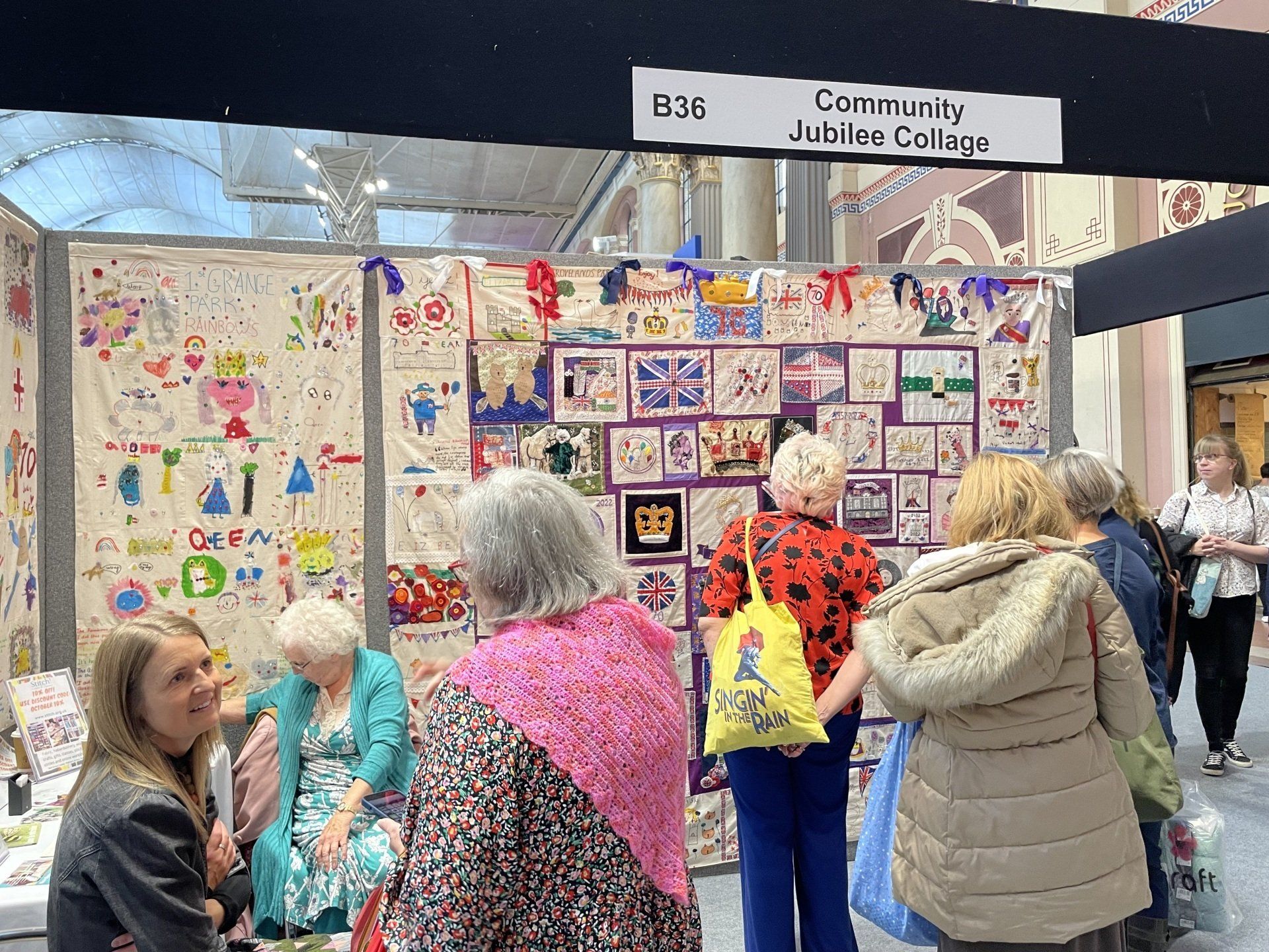 I presented a talk about this project to a packed audience at the Knitting & Stitching show at Alexandra Palace, where the collage was displayed. We received some brilliant comments about the project, and some people felt it was the best stand at the show.