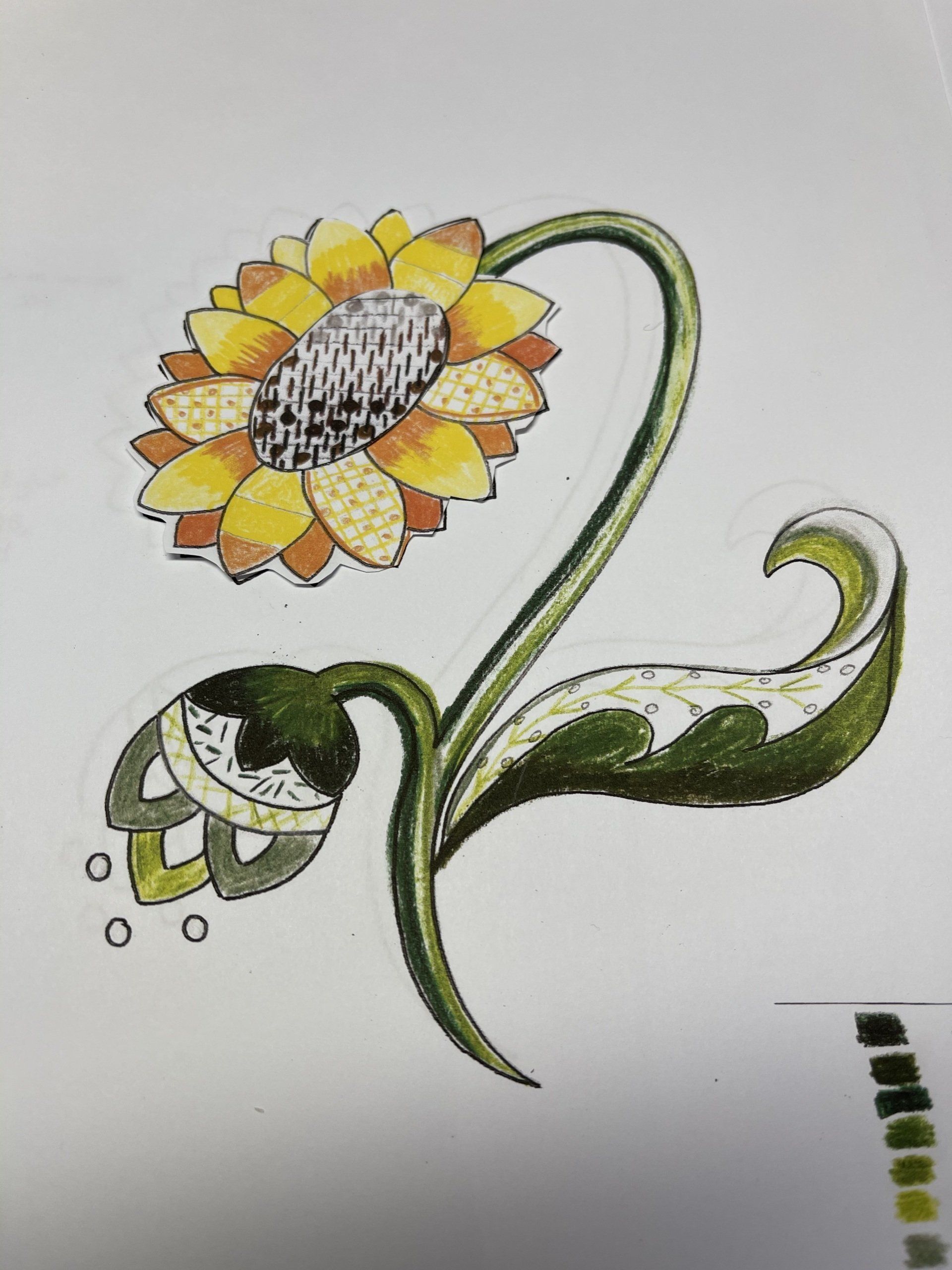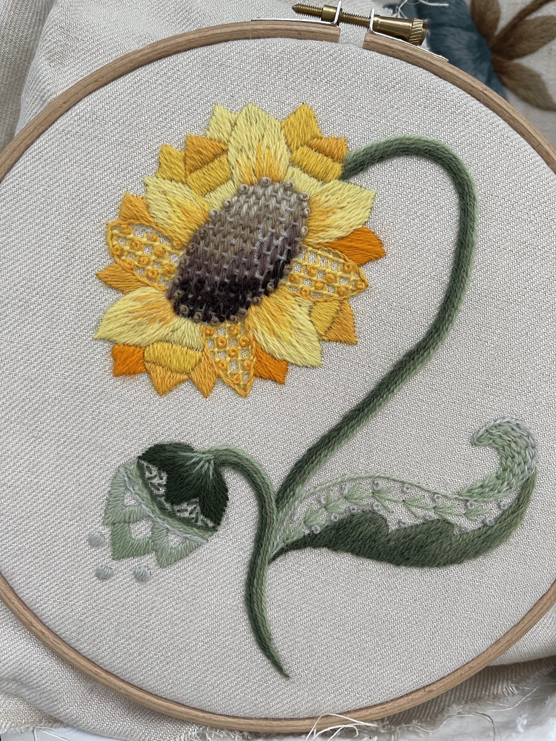 You will receive a copy of the full design and notes to help you finish the sunflower design at home
