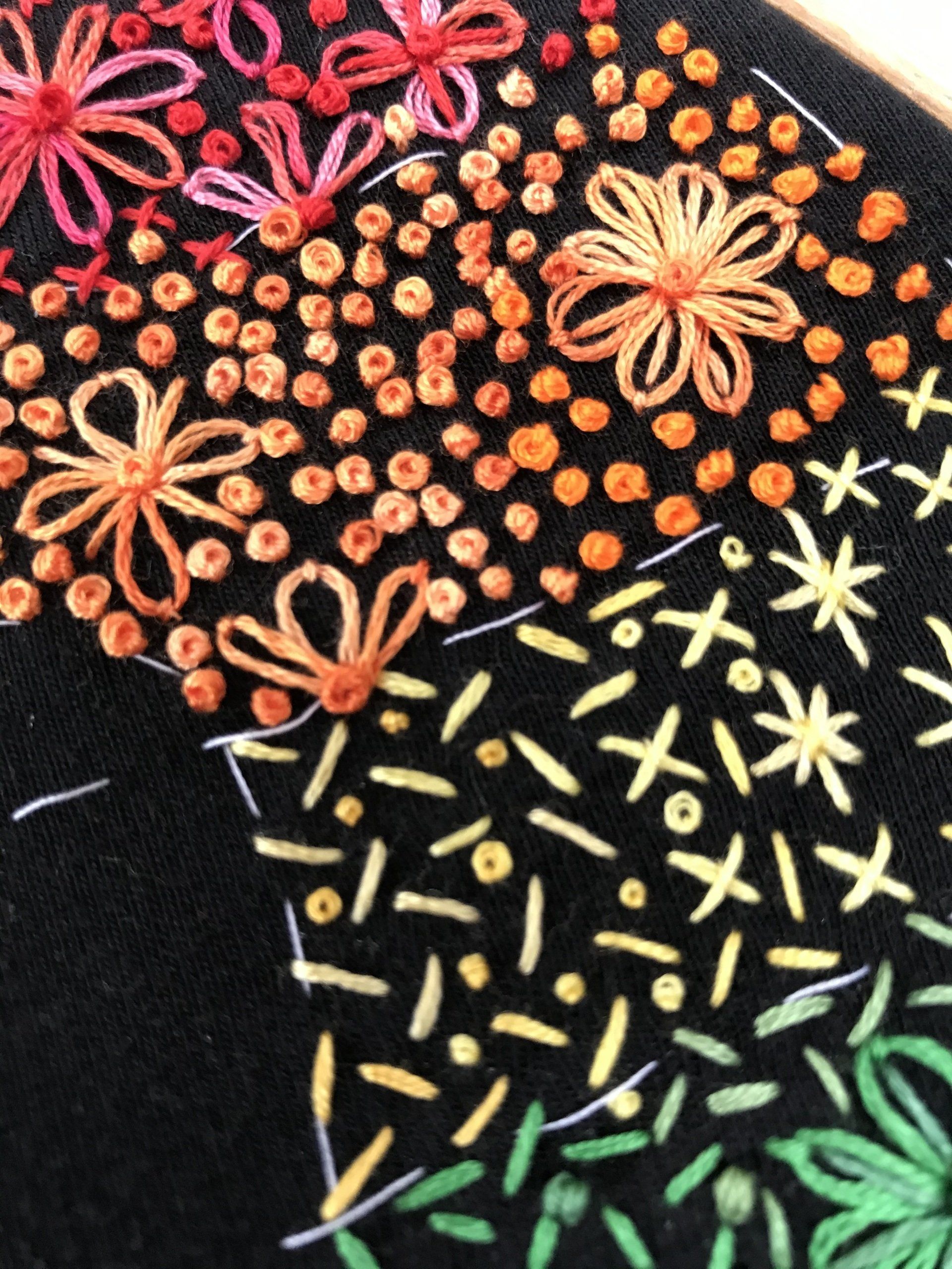 to create this fun bright design. You can also embroider onto a jersey fabric to be later attached to a garment of your choice.