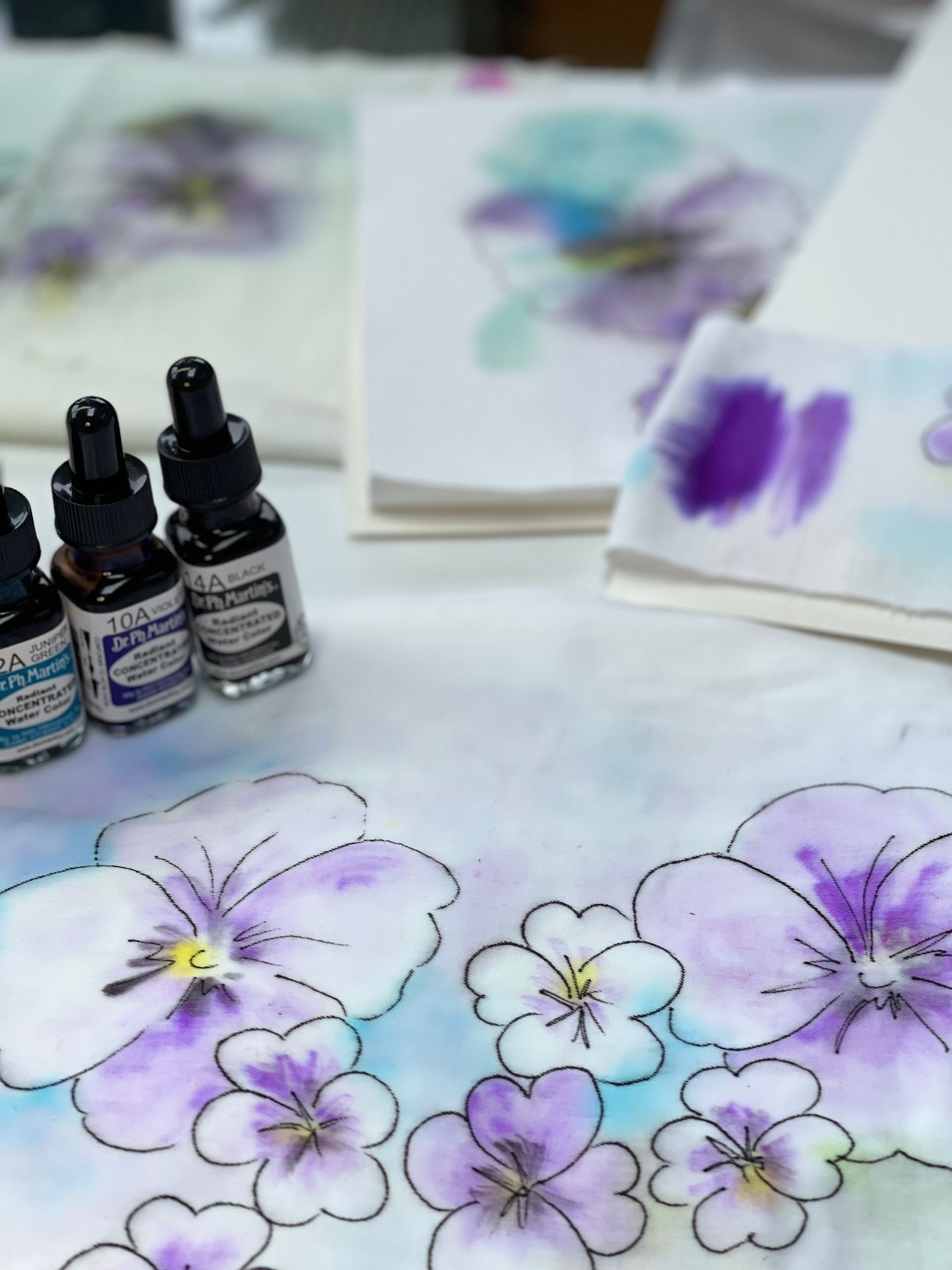 We will work with textile paints and varying fabrics to create a piece that you can make your own.
